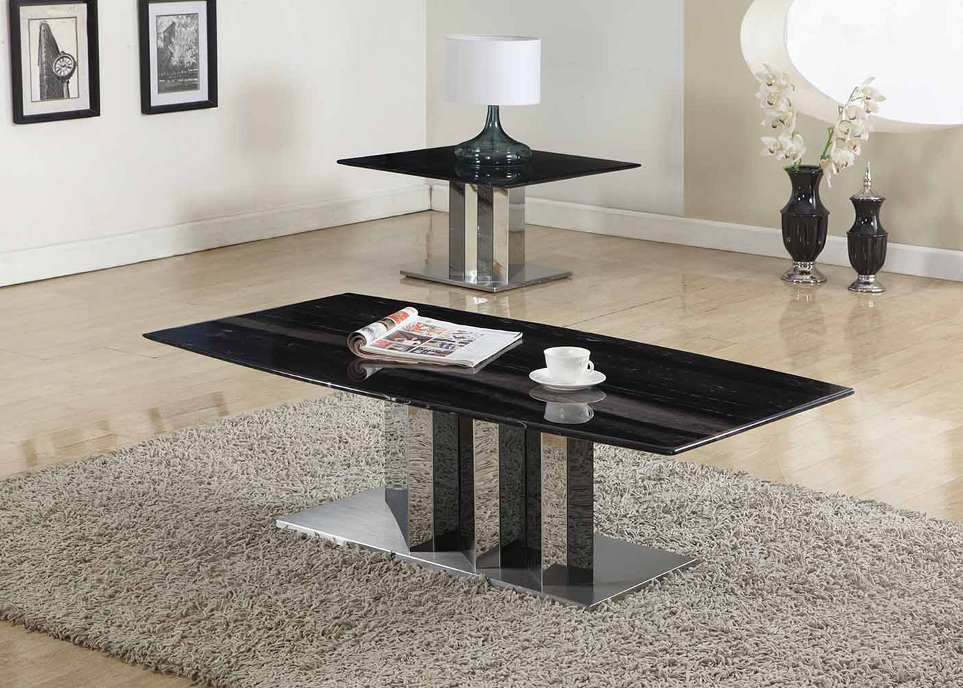 | Model: | 104911001 | Type: | Coffee table | Size: | 1300*700*400MM | Material: | YBL black real marble+stainless steel polished/brushed/titanimum black | Color: | Black | Base/leg Color: | Silver |
