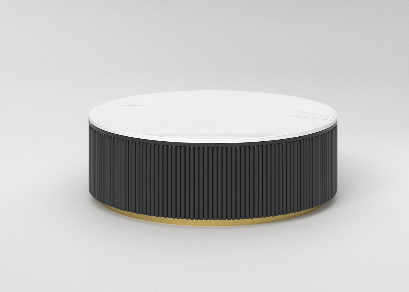| Model: | 104852410 | Type: | Coffee table | Size: | DIA1000*350MM | Material: | Sintered stone+MDF with black lacquer+stainless steel brushed plating golden color | Color: | White | Base/leg Color: | Black+Gold |