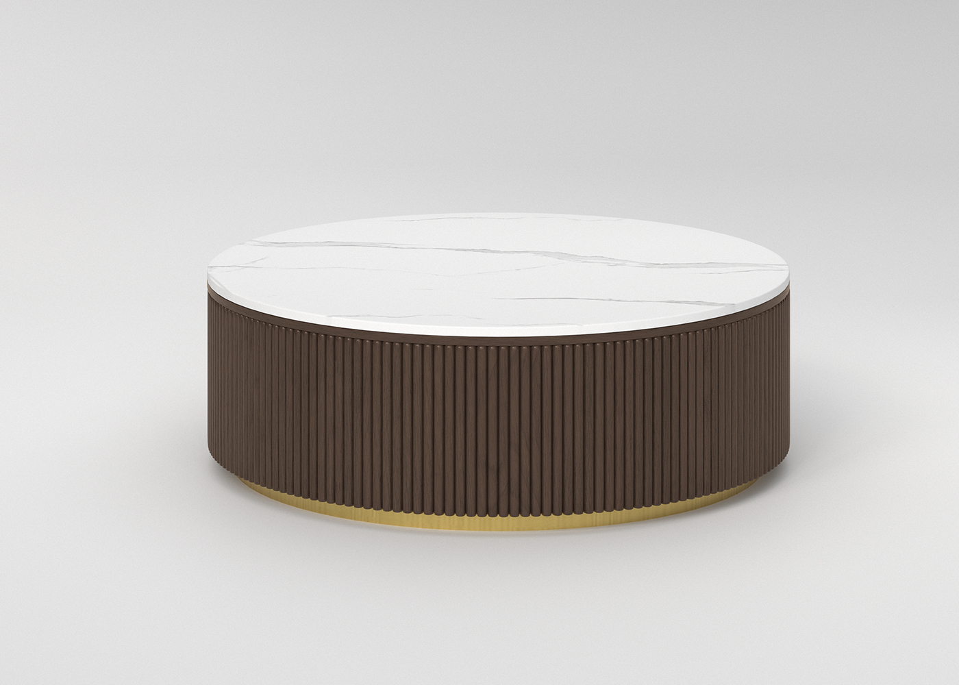 | Model: | 104852411 | Type: | Coffee table | Size: | DIA1000*350MM | Material: | Sintered stone+MDF with ash veneer walnut color+stainless steel brushed plating golden color | Color: | White | Base/leg Color: | Walnut +Gold |