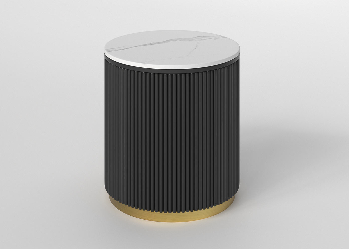| Model: | 105852413 | Type: | End table | Size: | DIA500*560MM | Material: | Sintered stone+MDF with black lacquer+stainless steel brushed plating golden color | Color: | White | Base/leg Color: | Black+Gold |