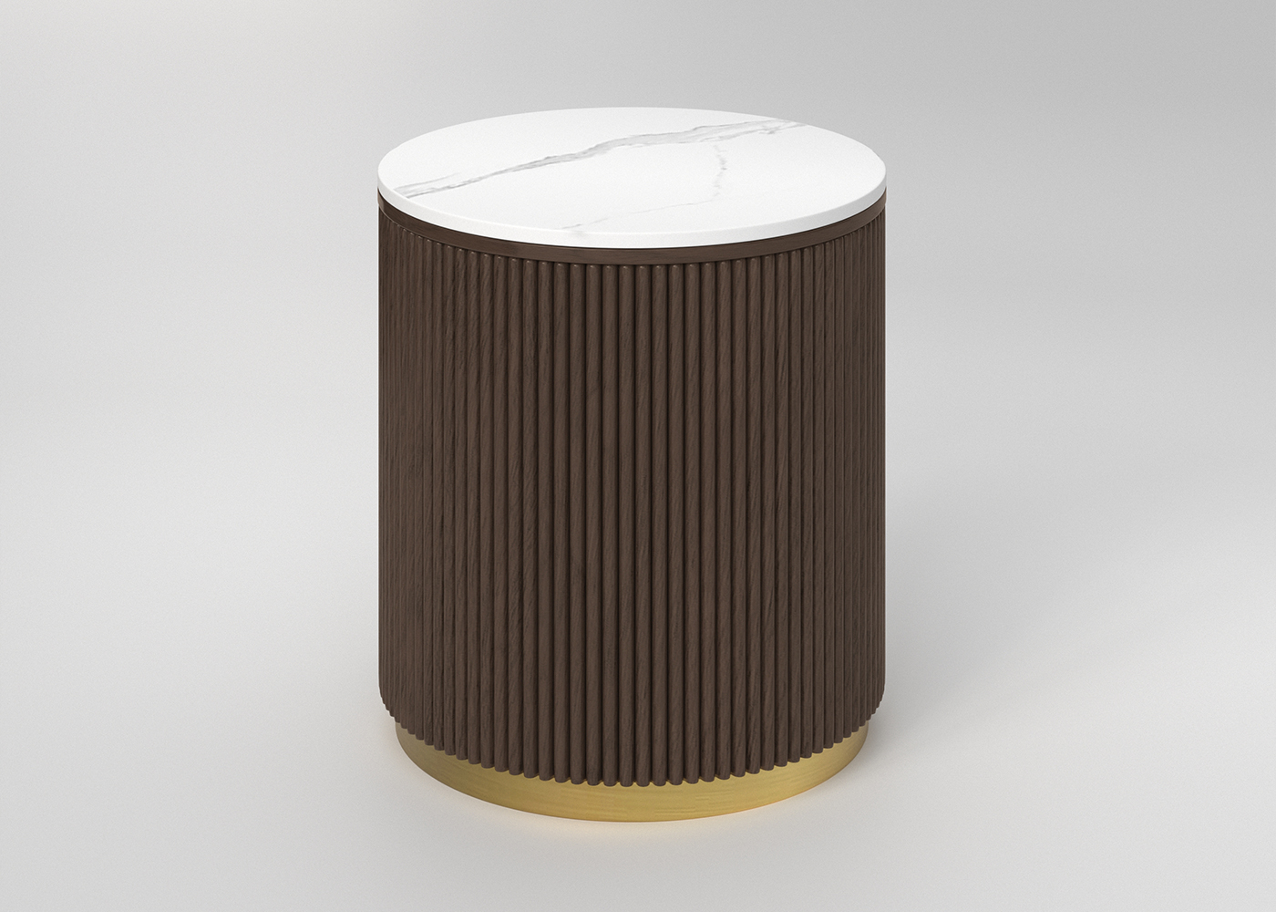 | Model: | 105852414 | Type: | End table | Size: | DIA500*560MM | Material: | Sintered stone+MDF with ash veneer walnut color+stainless steel brushed plating golden color | Color: | White | Base/leg Color: | Walnut +Gold |