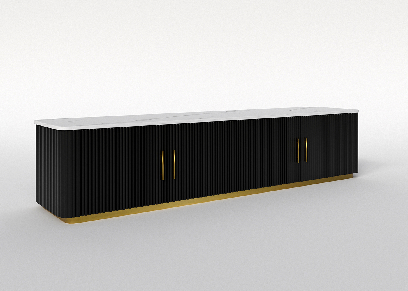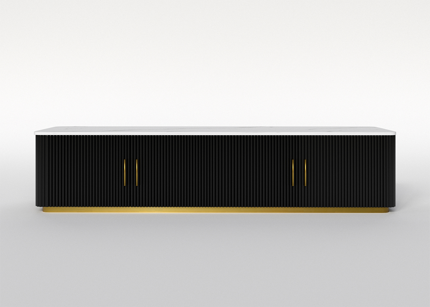 | Model: | 115852452 | Type: | TV stand | Size: | 2000*450*450MM | Material: | Sintered stone+MDF with black lacquer+stainless steel brushed plating golden color | Color: | White | Base/leg Color: | Black+Gold |