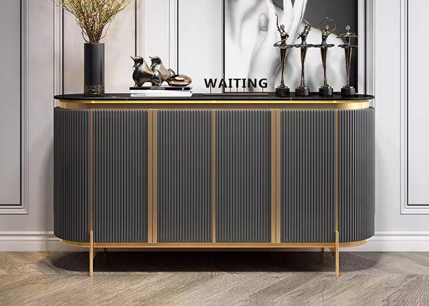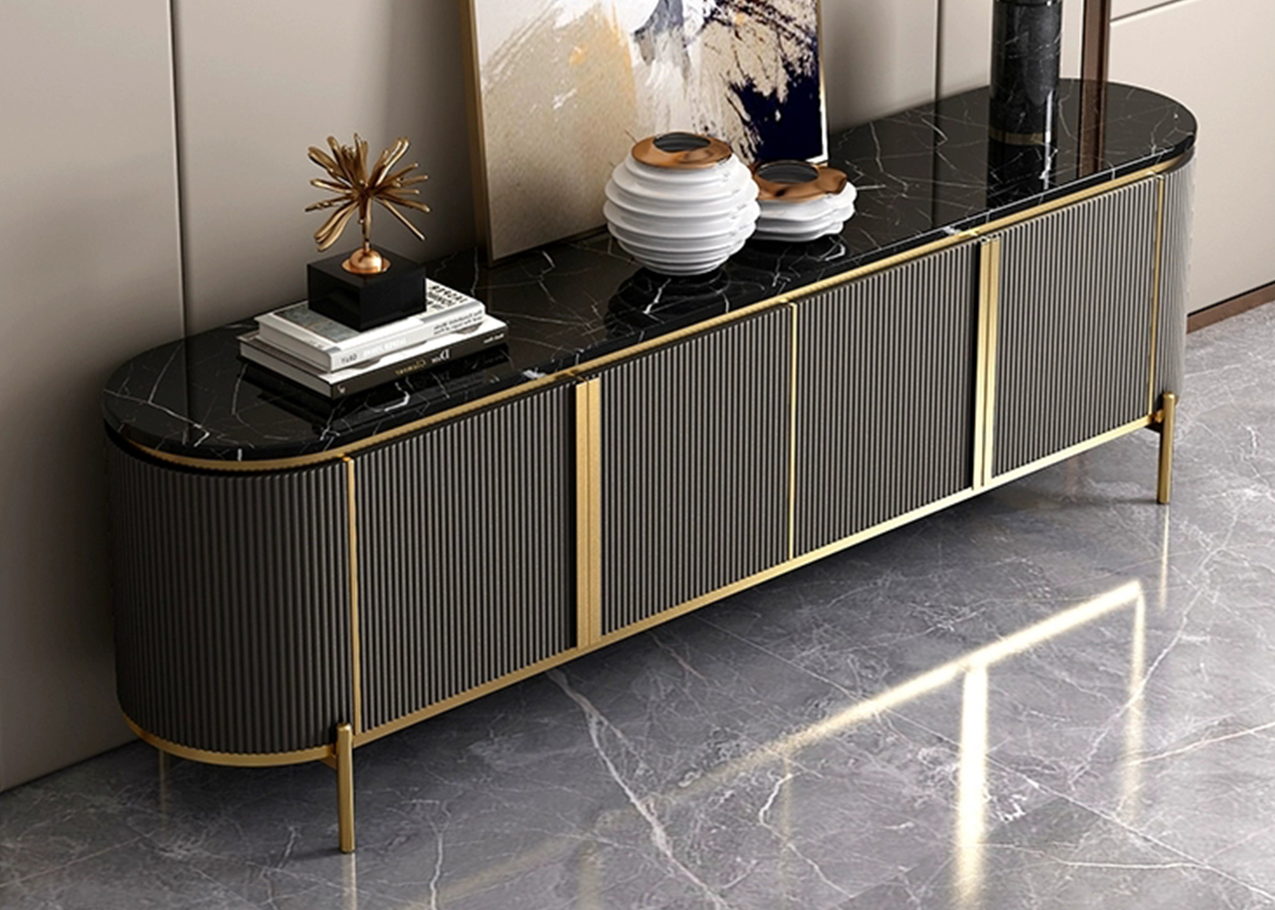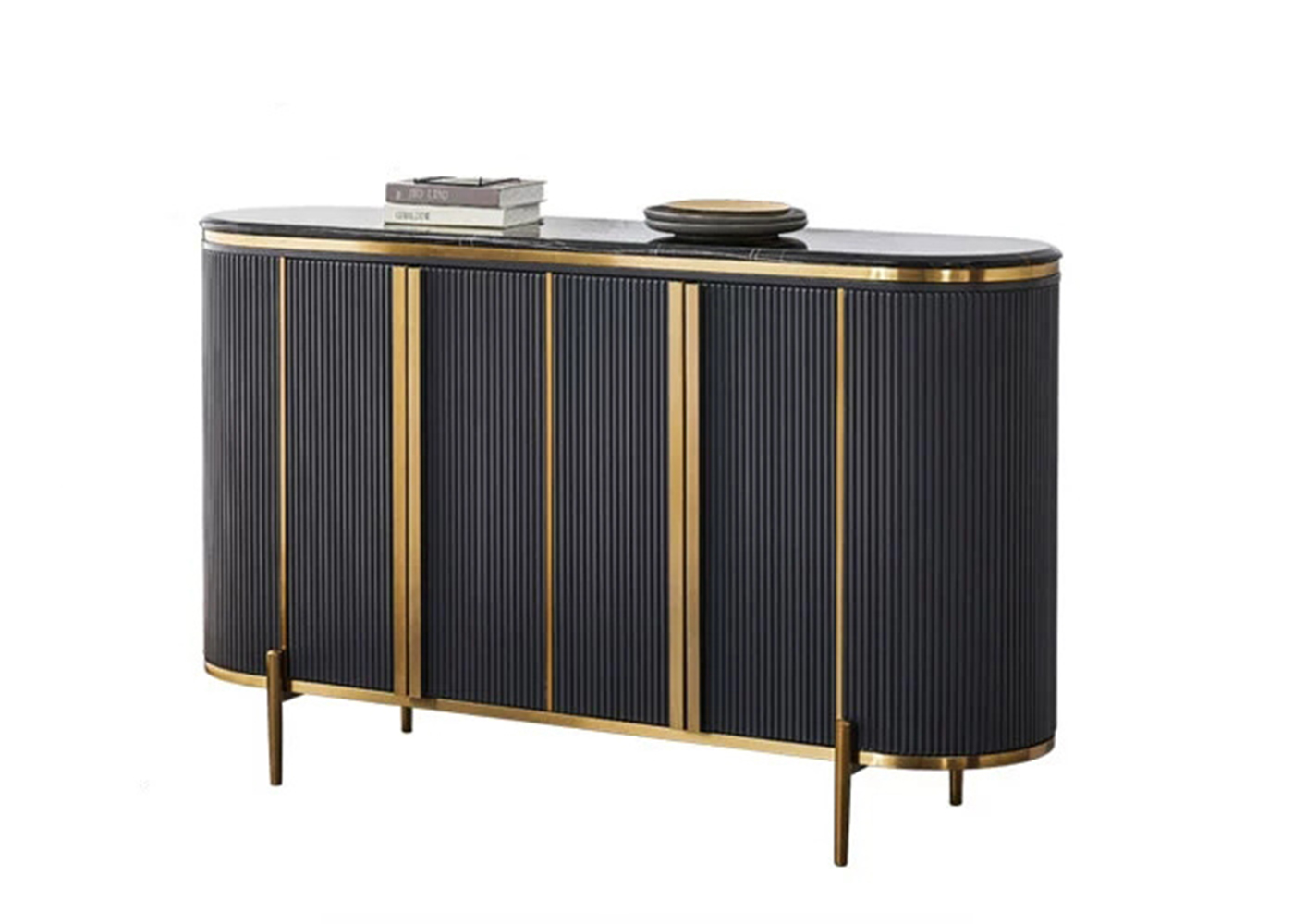 Black sintered stone+MDF with Black lacquer +stainless steel plating rose golden color