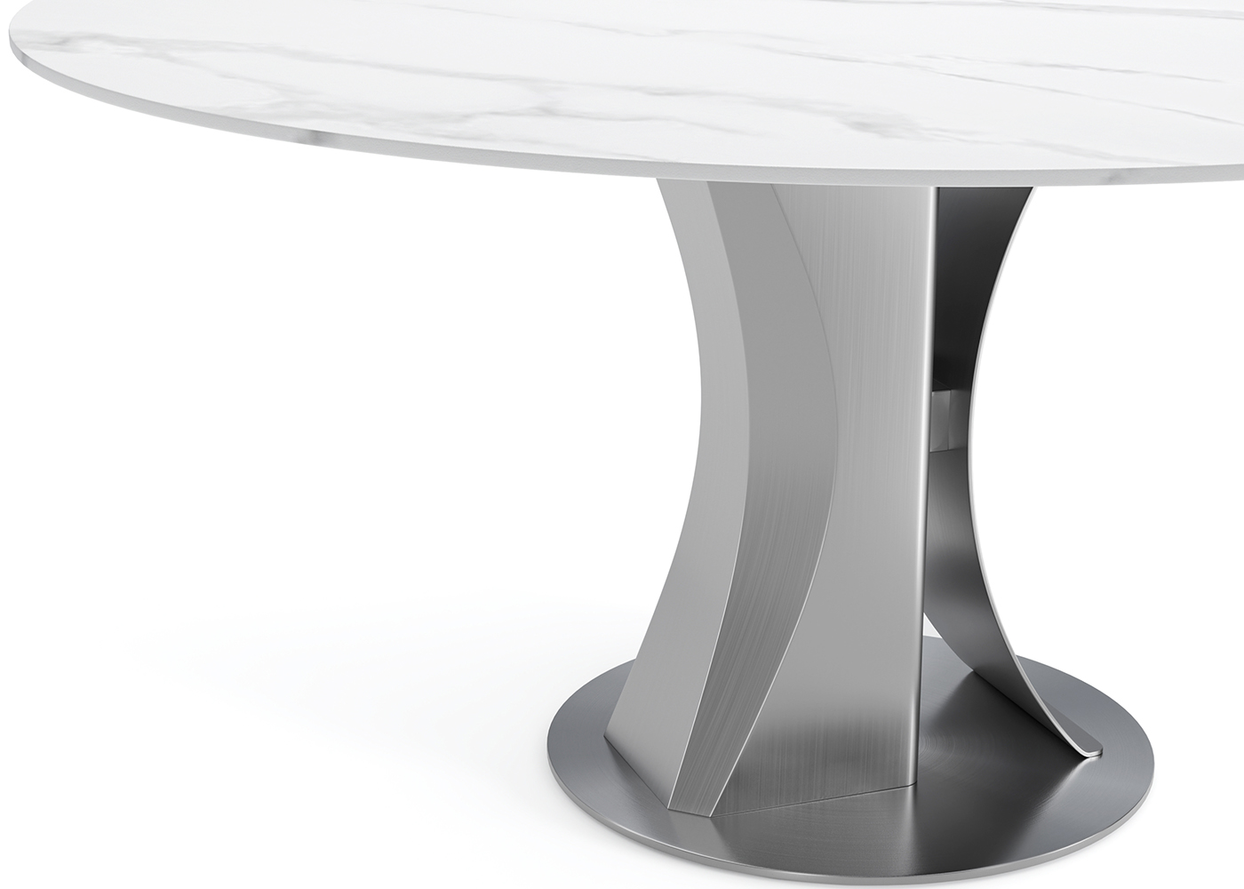 | Model: | 101842904 | Type: | Dining table | Size: | DIA1219*750mm | Material: | sintered stone Baidafeili 16M322 polished+stainless steel brushed | Color: | White | Base/leg Color: | Silver+Gold |