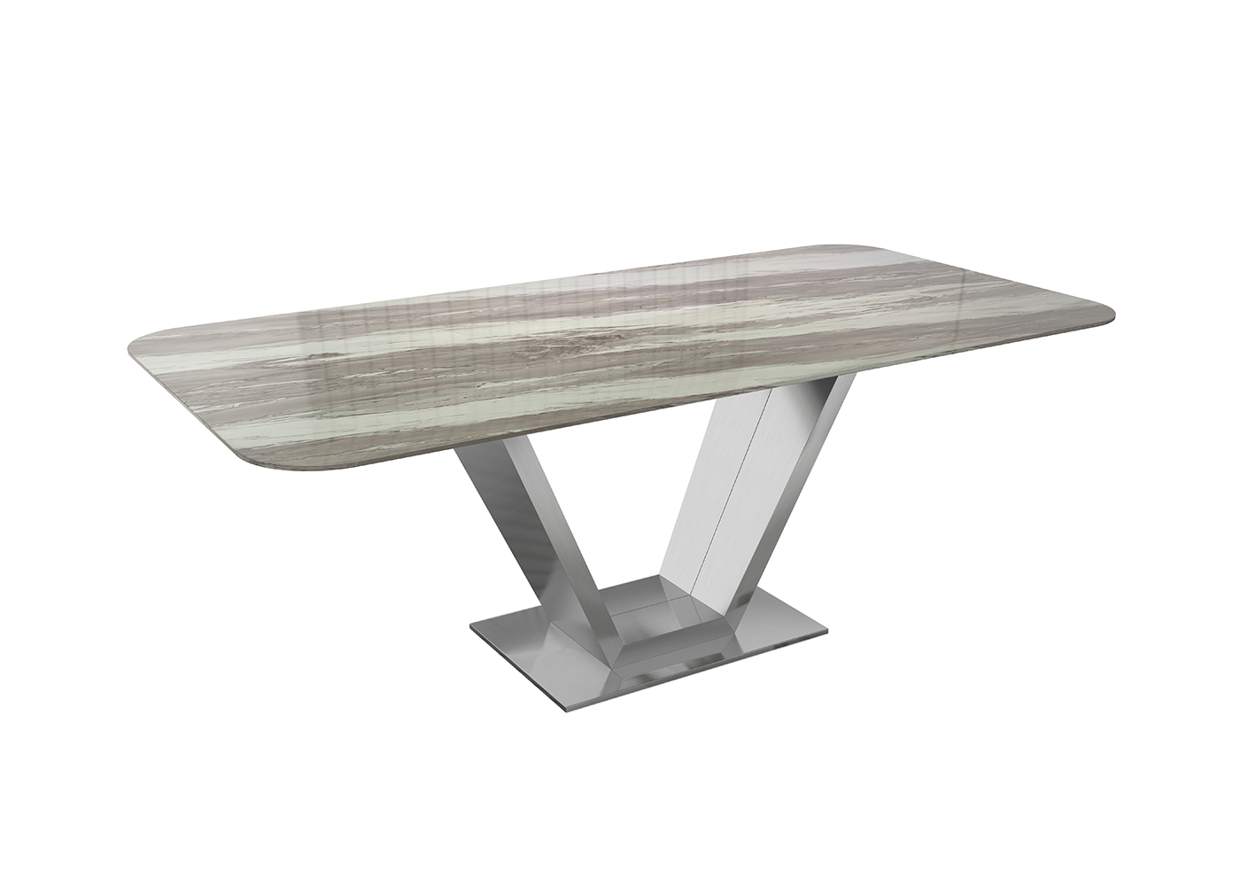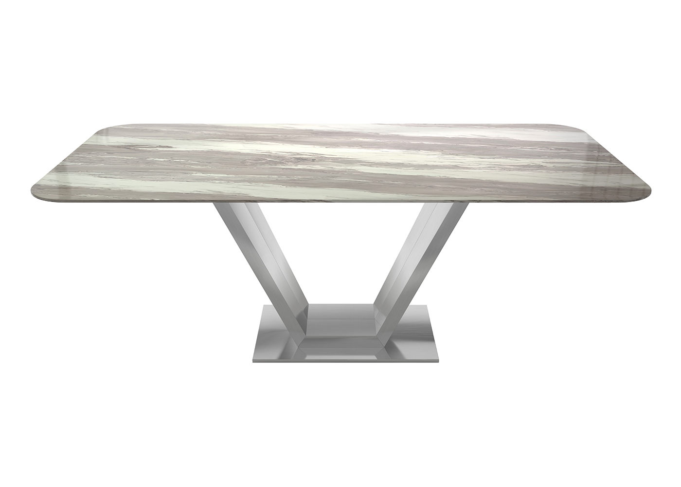 | Model: | 101083901 | Type: | Dining table | Size: | 1800*900*750MM | Material: | Chinese marble paste marble foil SY62089-1+stainless steel brushed | Color: | Gray white / Gray / White | Base/leg Color: | Silver |