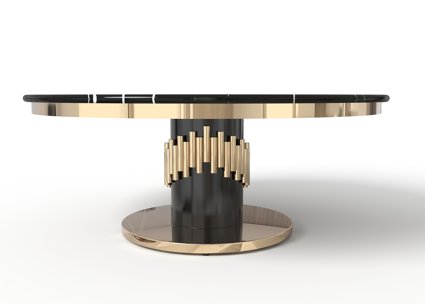 BW black real marble+iron powdercoated black+stainless steel polished titanium golden color